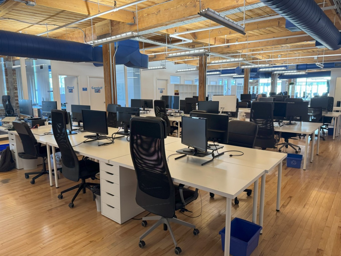 Description Built out space with private offices, boardrooms, meeting rooms, breakout rooms, and ample open space. Windows open, tenant controlled heating & cooling, furniture available, roof deck with wi-fi, dogs & bicycles welcome and monthly indoor park