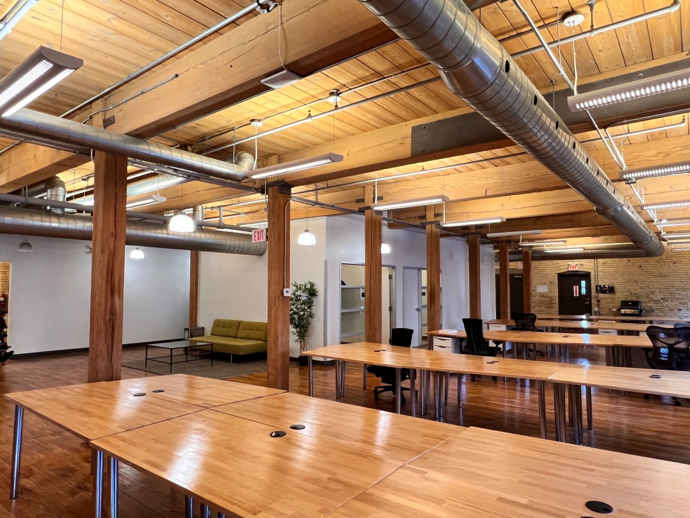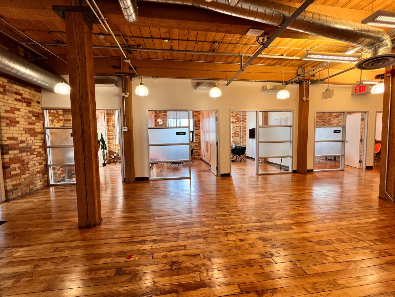 Description This beautiful full floor suite has hardwood floors, brick walls, high ceilings with sandblasted timber beams and large operable windows. The HVAC system is energy efficient and self controlled. Mechanical and life safety systems have been upgraded. Roof top patio with free Wi-Fi.